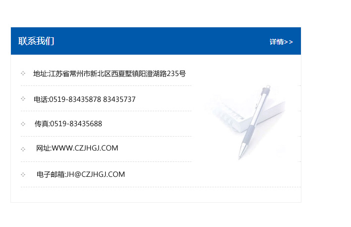 傳真:0519-83435688    郵編:213135    網址:WWW.czjhgj_com.jinfu99.com    電子郵箱:JH@czjhgj_com.jinfu99.com